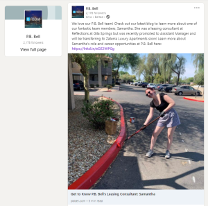 I love how P.B. Bell shines a spotlight on individual contributors. This social share leads to a blog post that explains more about the leasing position. What a brilliant way to educate someone who is unfamiliar with multifamily and try to tempt them into the field!